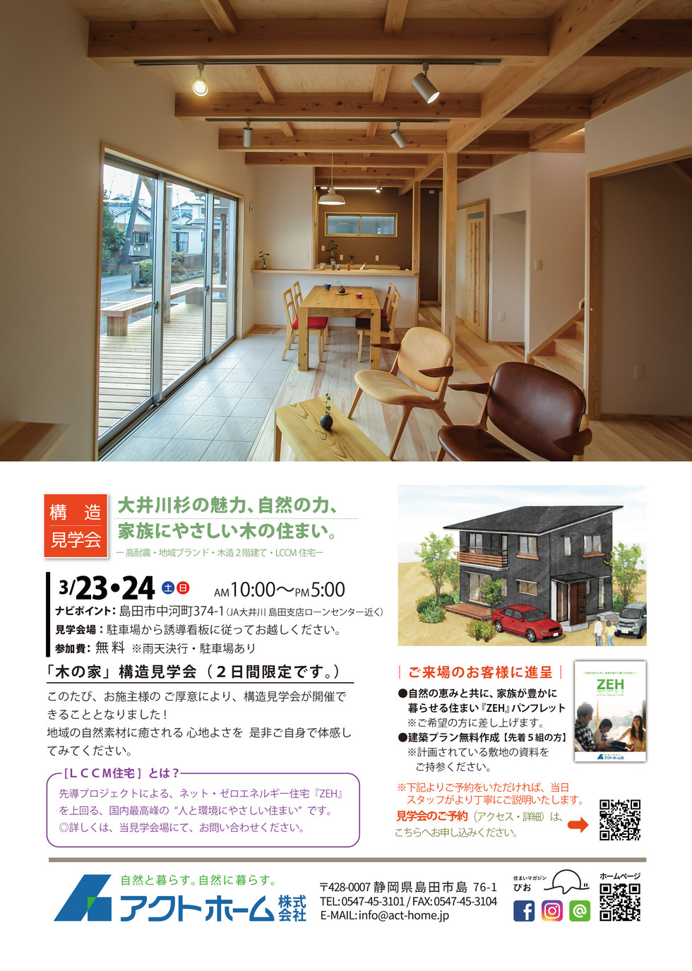 ■3/23・24 『大井川杉の魅力、自然の力、家族にやさしい木の住まい。』 ーLCCM住宅 構造見学会/島田市ー