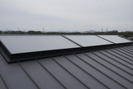 ▲屋根に 太陽光発電&太陽熱暖房換気システムを搭載